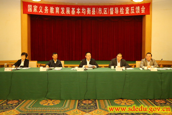 孙伟在讲话中强调,这次督导检查帮助我们发现了工作中的不足,对我省义务教育均衡发展工作是一个积极推动。下一步,我们在思想认识上还要再提高,尤其是提高各市县党委、政府和有关部门负责同志的思想认识,着力克服差不多思想和畏难情绪,把义务教育均衡发展作为重要的民生工程,持之以恒地抓下去,以实际成效检验开展群众路线教育实践活动的成果;在解决义务教育均衡发展重点难点问题上,力度还要再加强。要进一步加大教育投入,改善办学条件,进一步均衡配置教师资源,采取各种有效措施破解教育难题;教育督导的职能作用还要再强化,要加强对教育督导工作的领导,充实壮大督导力量。要按照国家督导组要求,尽快拿出整改方案,报告整改落实情况,使义务教育均衡发展工作有一个大的起色。