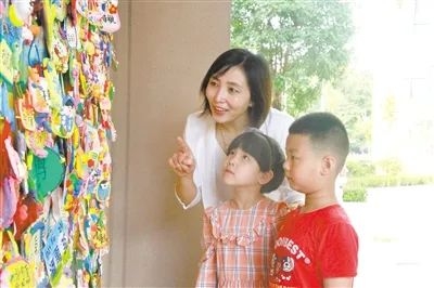 潍坊市高新区北海学校大观校区一年级学生用太空泥制作七彩梦想墙。