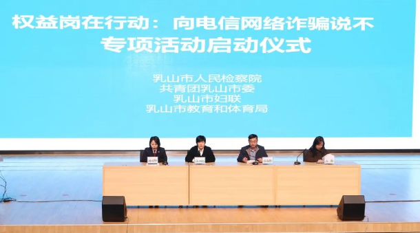 为深入贯彻习近平总书记关于打击治理电信网络诈骗犯罪工作的重要指示精神和中央有关要求,切实维护青少年合法权益,2023年12月18日下午,由乳山市人民检察院、共青团乳山市委、乳山市妇联、乳山市教育和体育局联合举办的“权益岗在行动: 向电信网络诈骗说不”专项活动启动仪式在乳山市中小学综合实践学校举行。