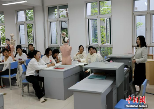 婴幼儿发展与健康管理专业老师在课堂上为学生们讲解婴幼儿保育学。赵晓 摄