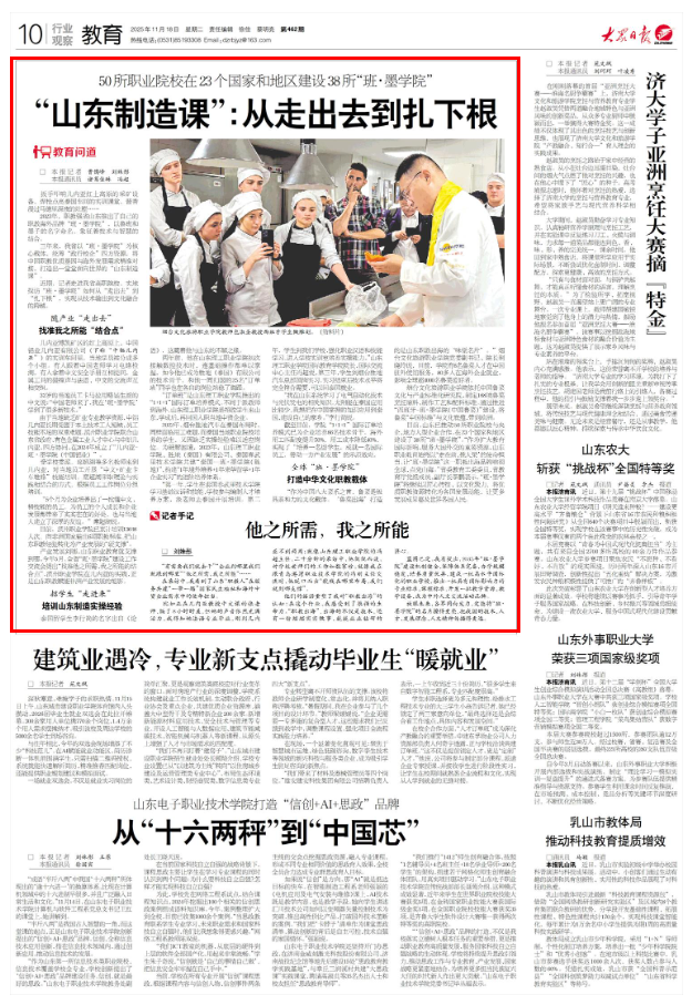 产业发展到哪,山东职业教育就支撑到哪。今年5月,全省“班·墨学院”建设工作交流会提出“找准他之所需、我之所能的结合点”,滨州职业学院在几内亚的实践,正是山东职教赋能非洲产业发展的缩影。