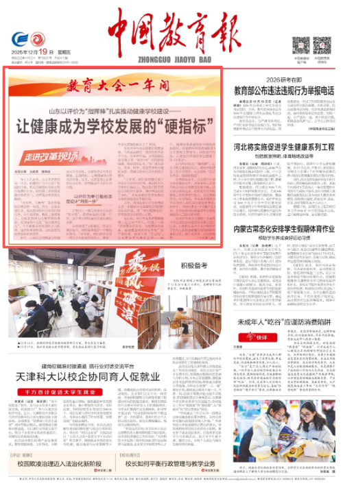 以考核评价为“指挥棒”,山东不断完善顶层设计,确保学校健康工作从省到市、从县到校“层层有责任、级级抓推进”。