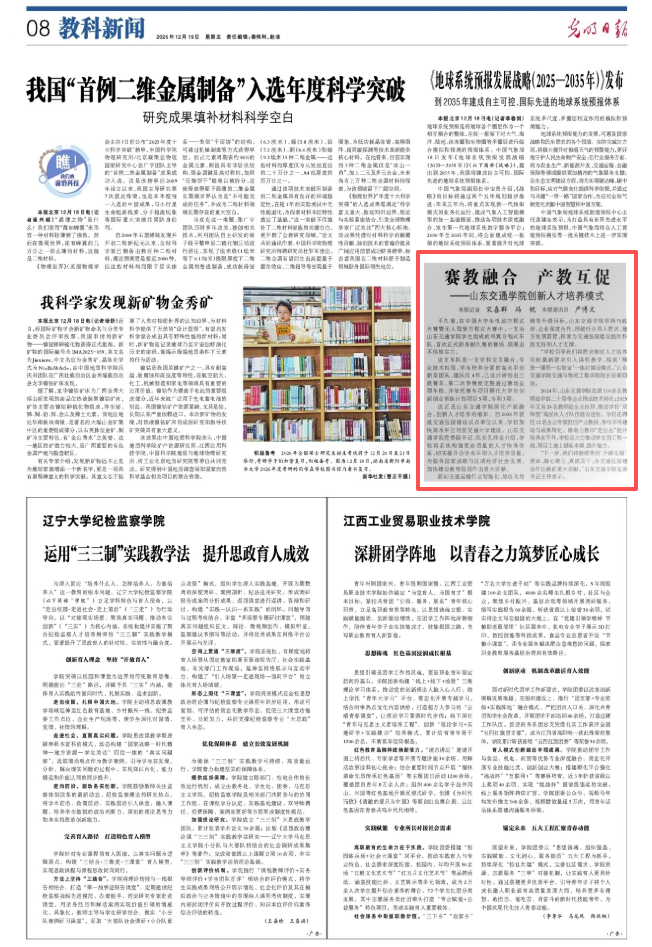 这正是山东交通学院深化产教融合、创新人才培养的缩影。自2024年获批交通强国建设试点单位以来,学校加快高水平应用型交通大学建设。山东交通学院党委副书记、院长孔伟金介绍,学校将系统构建更高质量的人才培养体系,切实提升办学水平和人才培养质量,为服务国家战略与区域经济社会发展、加快建设教育强国作出更大贡献。