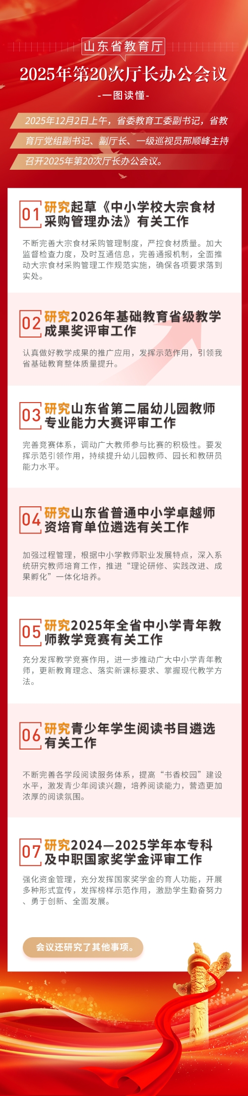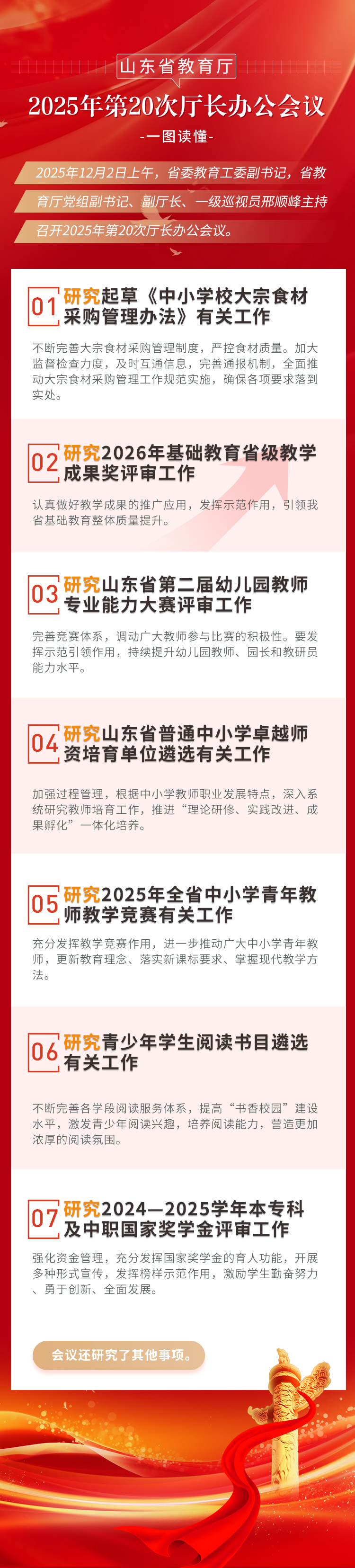 2025年12月2日上午,省委教育工委副书记,省教育厅党组副书记、副厅长、一级巡视员邢顺峰主持召开2025年第20次厅长办公会议。