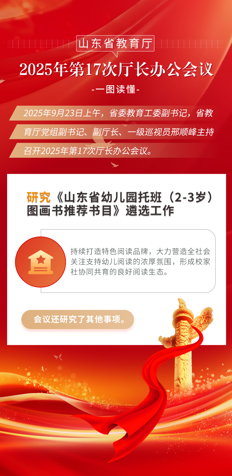 会议听取了学前中心关于《山东省幼儿园托班(2-3岁)图画书推荐书目》遴选工作有关情况的汇报。会议原则同意推荐书目。会议要求,充分发挥优秀图画书在推动儿童健康成长中的作用,持续打造特色阅读品牌,大力营造全社会关注支持幼儿阅读的浓厚氛围,形成校家社协同共育的良好阅读生态。