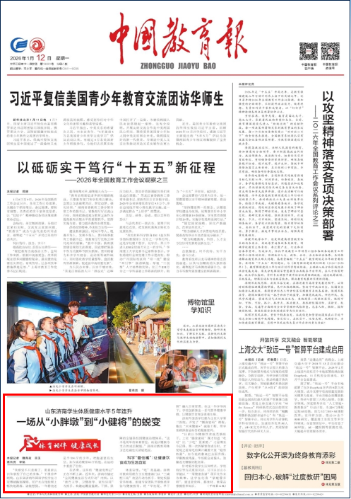 在济南,这样的“健康变形记”正在不断上演。近年来,济南市锚定“全民健康生活方式行动”内核,以“教育主导、卫健指导、家校协同”为抓手,构建起覆盖监测、干预、保障的全链条校园健康治理体系。“这不是简单的体重管控,而是以健康为支点的成长赋能。”济南市教育局体卫艺处副处长胡延亮说。