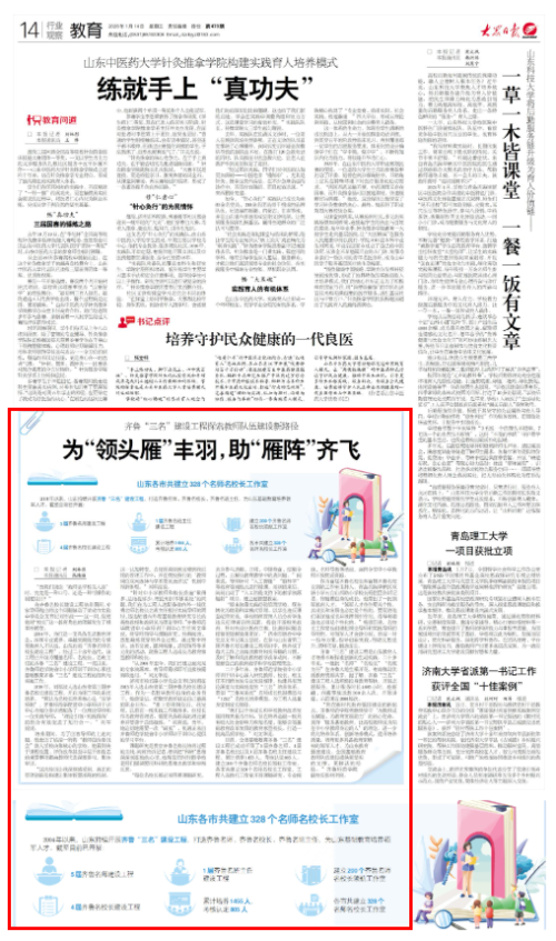 作为首届齐鲁名校长和首期齐鲁名校长领航工作室主持人,青岛西海岸新区双语小学五台山西路小学校长杨世臣告诉记者,伴随着自身的成长,他带出了一批领军教育人才。“领军人才往往更具个性,其成长和发展也必定是个性的,要促进他们更好地成长并发挥领军作用,指导和锻造也必须是个性化的。”杨世臣说,名校长工作室也创建起理论导师和实践导师的导师组,对领军人才会诊分析,形成一对一指导方案,指导创新实践,帮助反思提升,循环往复,锻造成长。