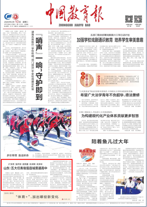 本报讯(记者 魏海政)近日,山东省教育厅等八部门印发了《山东省县域普通高中高质量发展行动计划实施方案》,围绕“扩资源、强师资、提质量、优保障、促多样”五大任务,提出“到2030年县中教育资源供给机制进一步完善,布局更加合理,办学条件显著改善,教师结构进一步优化,评价体系更加科学,市域内县中优质均衡、特色多样、职普协调发展的格局全面形成”等目标任务。