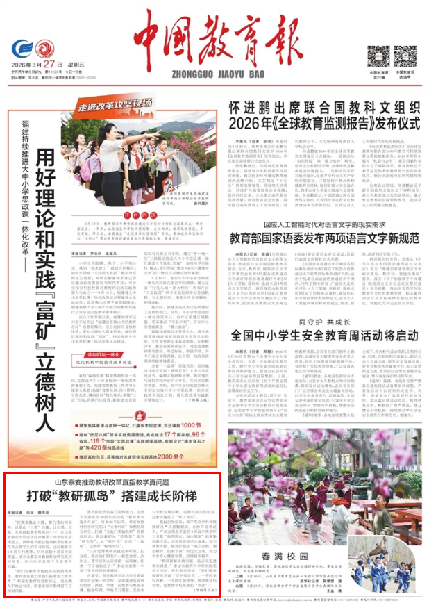 “教研要解决真问题,就必须走进真实课堂。”泰安市教育科学研究院党总支书记、院长张衍伟说,“我们要求教研员不做‘空中指导员’,一手抓学科深耕,一手抓区域指导,既要做学科专家,也要做学校发展的‘参谋’。”