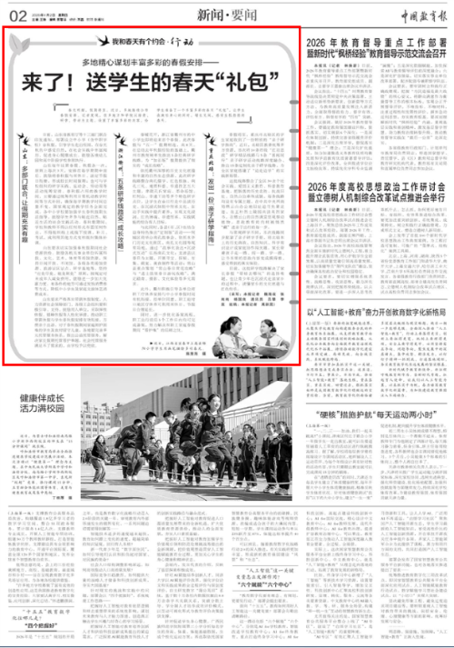 春光明媚,假期将至。近日,多地陆续公布春假安排。记者发现,很多地方和学校以踏青、研学、劳动为主题,设置了丰富多彩的内容,给学生准备了一个丰富多彩的春天“礼包”,让学生在放松身心的同时,增长见闻,感受生机勃勃的春天。