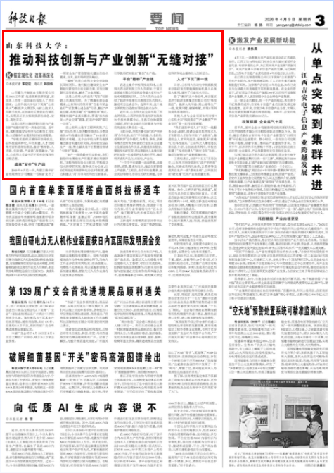 “学校有组织开展科研协同攻关,在科技成果转化、平台共建、人才协同等方面形成高效联动,推动‘教育链、人才链、创新链、产业链’深度融合。”近日,山东科大党委书记王君松告诉科技日报记者。